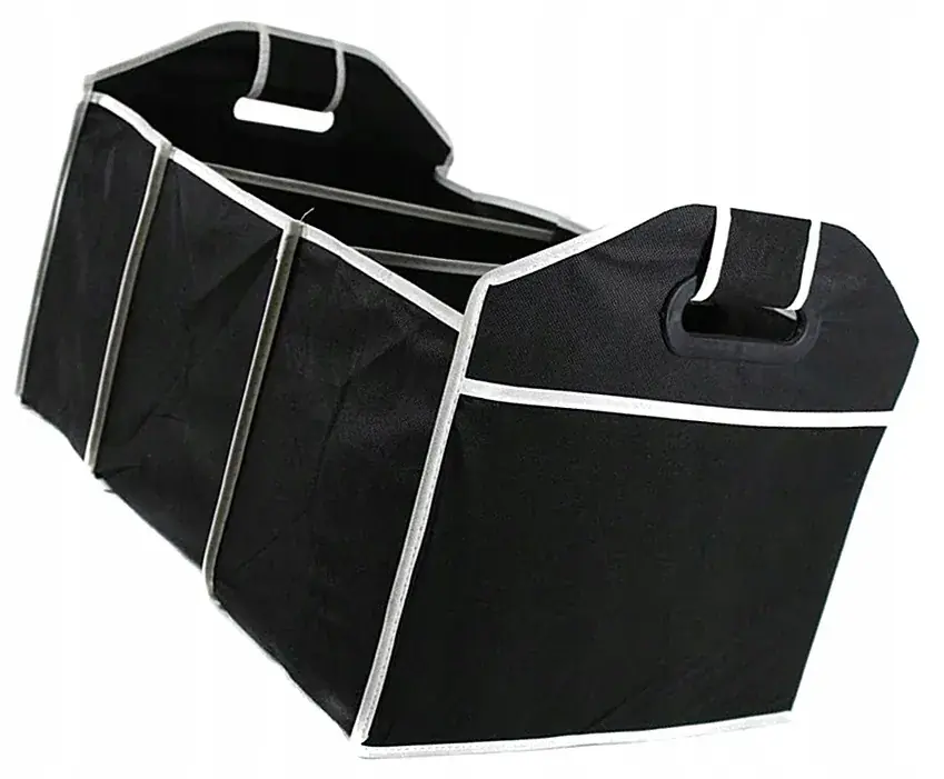 Torba, organizer, postawiony w bagażniku samochodu zmieści przydatne rzeczy, które często wozimy w aucie. Po złożeniu nie zajmie wiele miejsca. Ma praktyczny, czarny kolor i wygodne, mocne uchwyty. Organizer zawsze możesz mieć w pod ręką i rozkładać tylko w czasie potrzeby.