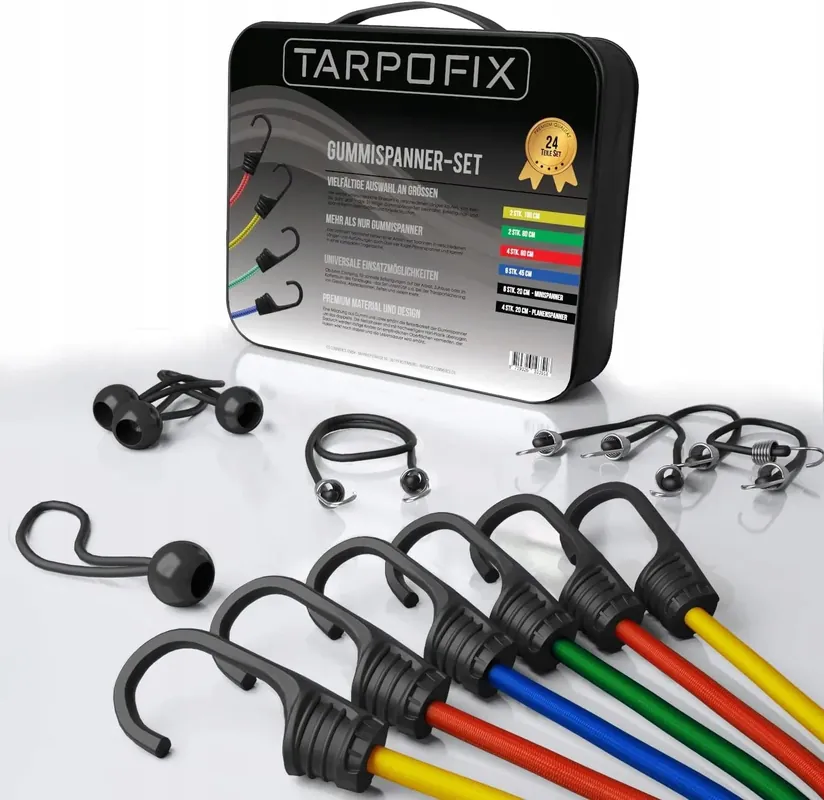 ✔️Konstrukcja: Każda z linek zakończona jest praktycznymi haczykami, które ułatwiają szybki i pewny montaż oraz demontaż.