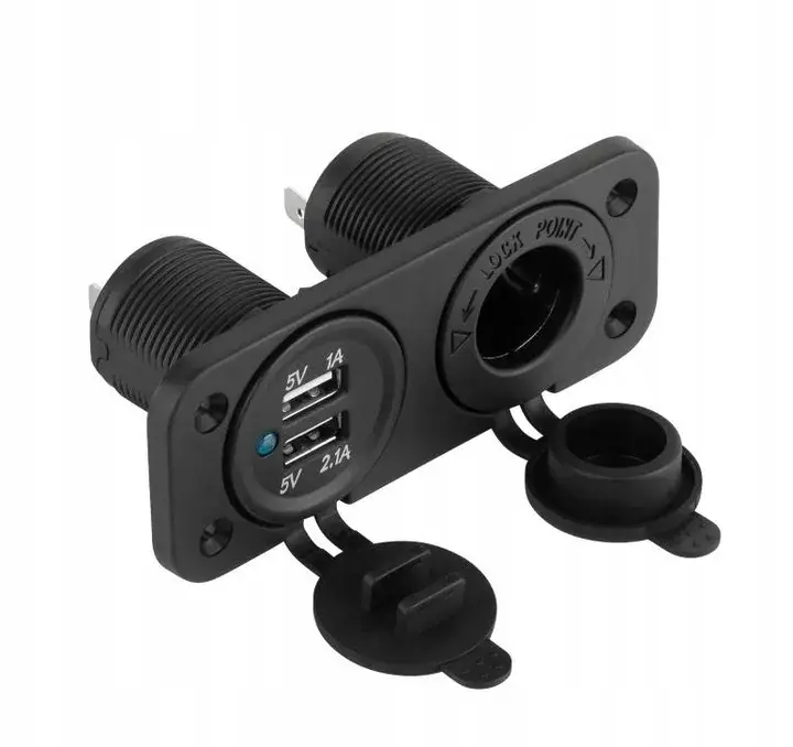 ✔️ Elegancki i praktyczny design z podświetleniem gniazd oraz opcją zabudowy w pojeździe.