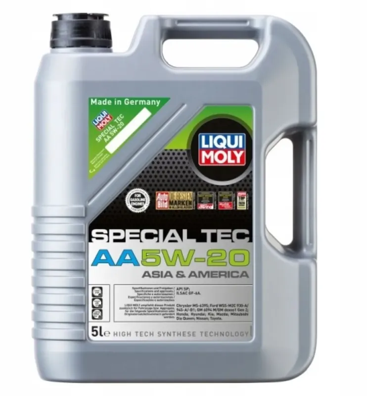WŁAŚCIWOŚCI I SPECYFIKACJELEPKOŚĆ: 5W20API SPILSAC GF-6ALiqui Moly rekomenduje ten produkt do samochodów które wymagają oleju ze specyfikacją:Chrysler MS-6395Fiat 9.55535-CR1Ford WSS-M2C 930-AFord WSS-M2C 945-AFord WSS-M2C 945-B1Ford WSS-M2C 960-A1GM 6094 MGM dexos1 Gen 3HondaHyundaiKiaMazdaMitsubishi Dia QueenNissanToyota
